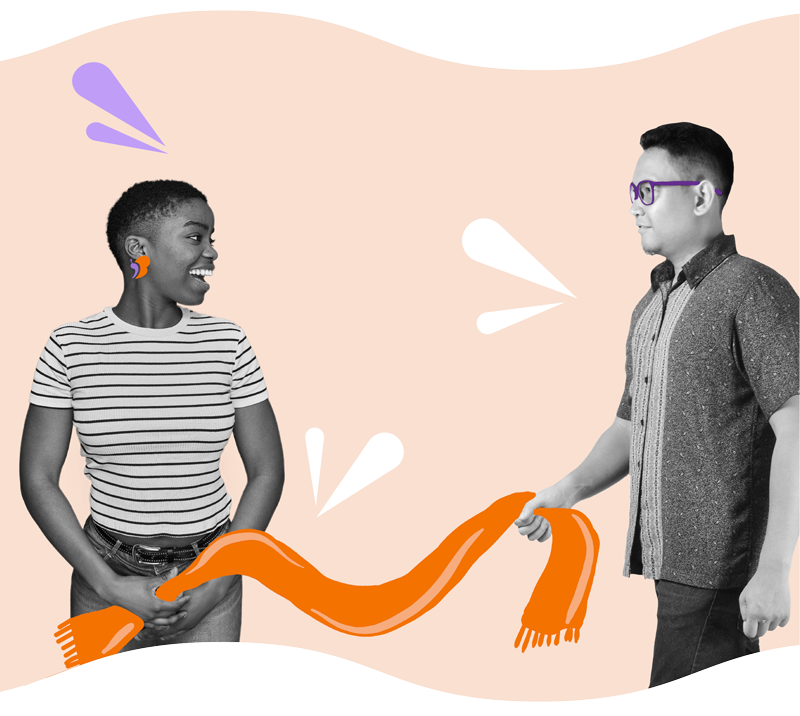 L’écharpe représente ce qui circule entre deux personnes : messages, émotions, ressentis, attentes, etc.
